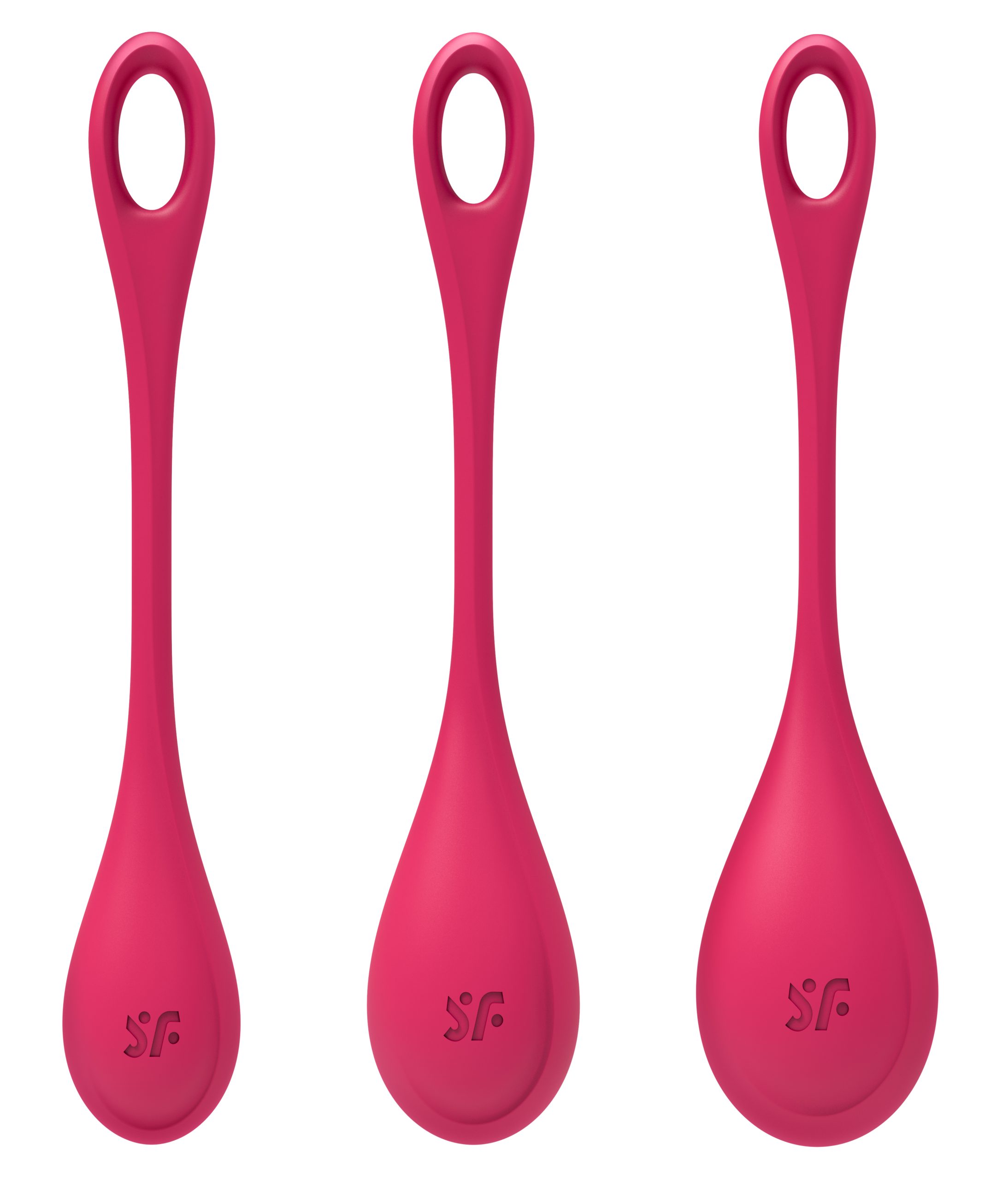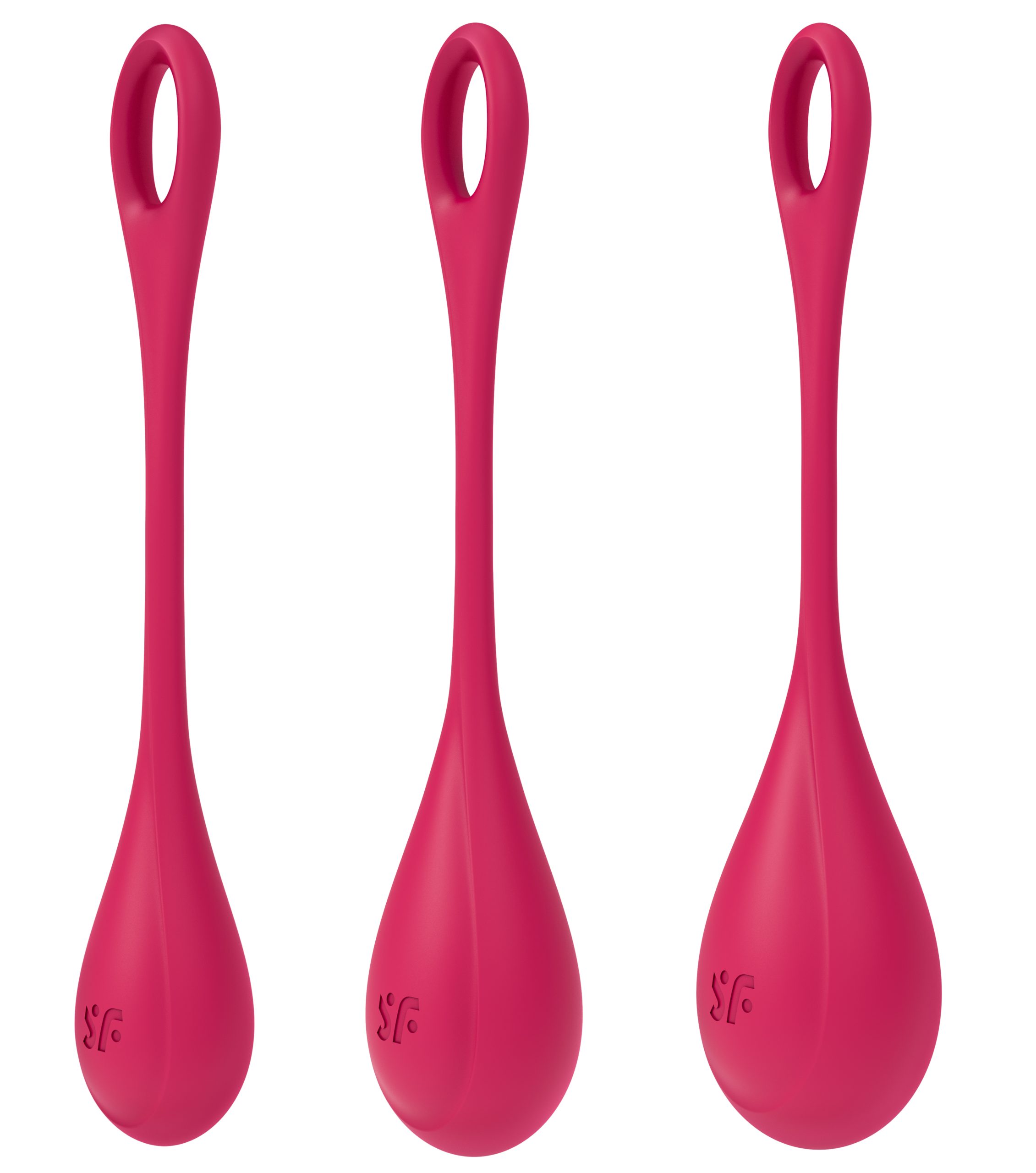 With the Satisfyer Yoni Power 1 you can strengthen your pelvic floor and enjoy even more intense orgasms. In contrast to pelvic floor exercises with other Ben Wa balls, the focus of the Yoni Power 1 is not just on the weight, but above all on the size of the balls: You start with the largest and heaviest ball, wear while standing, (3 cm diameter, 74 g) and work your way through the medium (2.5 cm diameter, 46 g) to the smallest and lightest ball (2 cm diameter, 22 g) The more frequently you do the pelvic floor training, the tighter your muscles become, so you can eventually hold the ball with the smallest circumference. You only have to use the balls for 15 minutes a day to achieve an effect that not only you, but also your sweetheart will notice during vaginal intercourse. The ribbed structure of the round balls also stimulates you during training.
