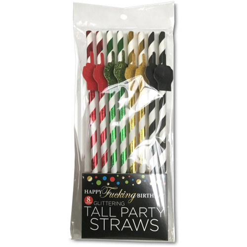 Happy Fucking Birthday line of partywares are approved by sassy grandparents and anyone that enjoys a good laugh on their special day! This line of hilarious party products has been regarded by media outlets worldwide as the “Official line of adult- themed disposable paper products of 2022”. This beautifully patterned line of tableware features 8 high quality paper 8 inch straws with glittering fuck you fingers. Complete this look with coordinating Happy Fucking Birthday napkins, balloons, candles, games and more!