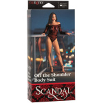 The ScandalĀ® Off the Shoulder Body Suit is full-body playwear that is sure to start the steamy night you desire. With an off-the-shoulder, cheeky design, this outfit frames your body in a steamy, sensual fashion. Embrace your wild side with a look that will have your partner worshiping at your feet. This nylon-spandex blend is designed to hug the wearer to provide exceptional, explicit eroticism with a playful smile or a dominant smirk of confidence. ScandalĀ® Off the Shoulder Body Suit is a great surprise as a gift to yourself, or for your lover which is sure to add the spice to the bedroom that you are looking for. This breathable mesh lace outfit is designed to stretch over the body and hug your curves, providing a comfortable fit for most standard sizes, and is hand-washable to ensure a long lifetime of repeated fun.