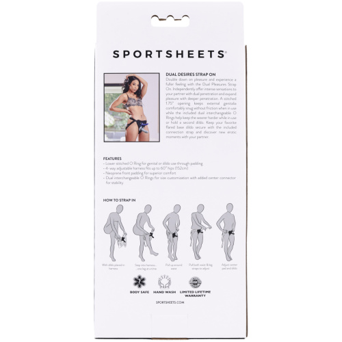Double down on pleasure and experience a fuller feeling with the Dual Pleasure Strap On. Independently offer intense sensations to your partner with dual penetration and expand pleasure with deeper penetration. A stitched 1.75″ (4.44 cm) opening keeps, external genitalia comfortably snug without friction when in use while the included dual interchangeable O Rings help keep the wearer harder while in use or hold a second dildo. Keep your favorite flared base dildo secure with the included connection strap and discover new erotic moments with your partner.