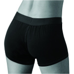 Feel more comfortable and stylish than ever before when you strap on your favorite dildo. This boxer brief style harness feels just like underwear, with an O-ring that stretches to accommodate most dildo sizes. You can even wear these cotton shorts out under your clothing, or stuff them with your favorite packer. This harness is excellent for extended wear. The supportive elastic waistband will carry the weight of your dong and you will be allowed greater mobility and position versatility. This harness is recommended for use with dildos that have a flat base that is 1.75 inches or wider.