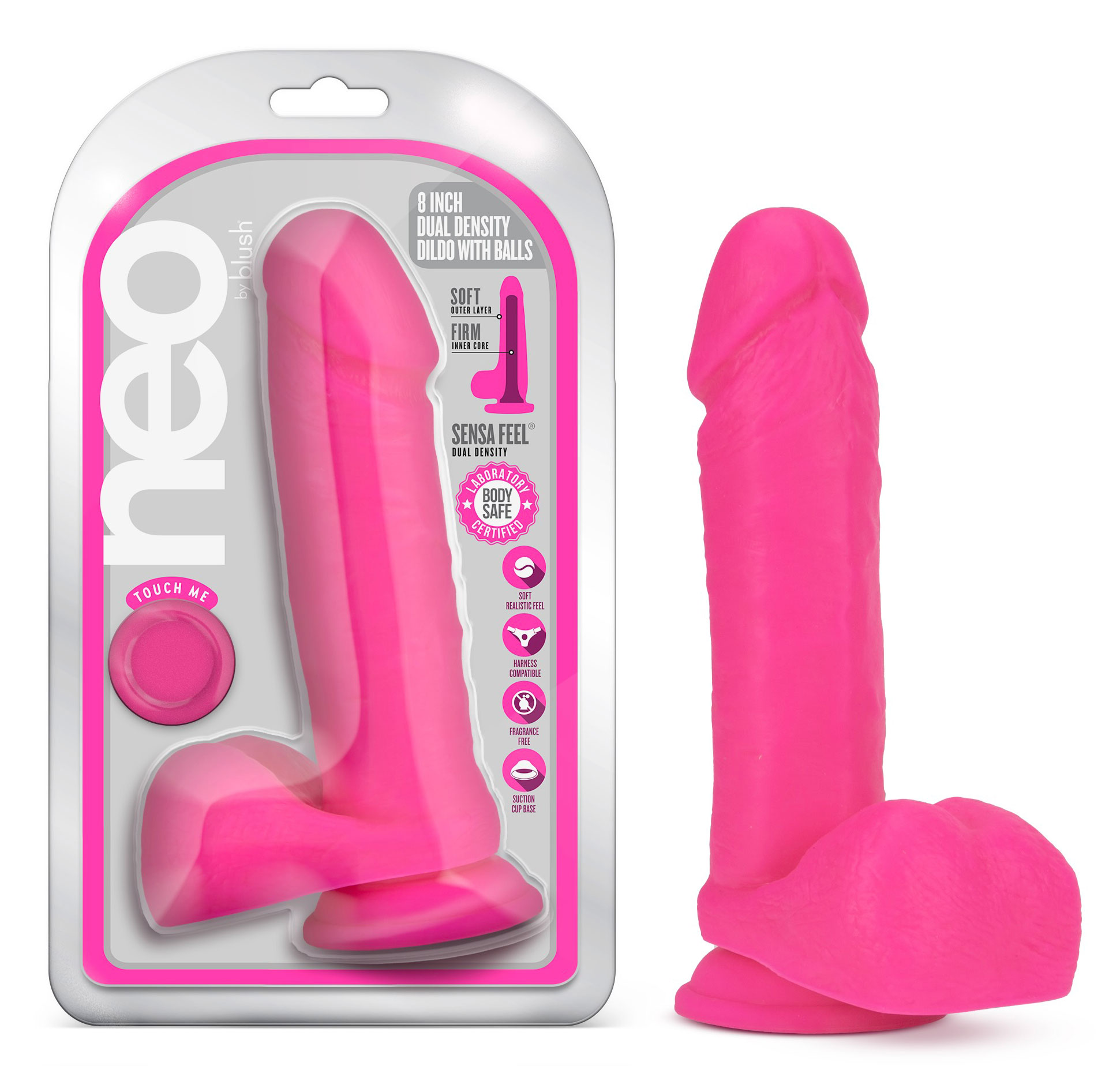 The Neo 8 Inch (20.32 cm) Dual Density Dildo is here to bring some brightness to your playtime! Sculpted to look and feel lifelike, Neo also has a powerful suction cup base for hands-free play and is harness compatible for partnered adventures. Sensa Feel dual density allows this dildo to have a firm inside that keeps it rigid for penetration and a soft, realistic outside. Made from non porous PVC, Neo 8 Inch (20.32 cm) Dual Density Dildo contains no fragrances, phthalates, paraffins, or latex.