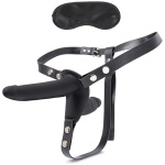 Silicone Strap on Harness Dildo With Internal Penetration – Black