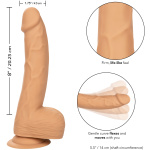 (20.25 cm) has arrived to deliver a pounding experience fit for any size queen. The real-feel dong is crafted with an ample 8-inch (20.25 cm) shaft, realistic flexible design, and suction cup base. Deliver the pleasure you’ve been craving with a 8-inch (20.25 cm) long dong with sensual tip, textured shaft, and life-like balls. The textured shaft has a firm, yet flexible feel sure to deliver a truly realistic penetration experience. The flanged base has a sturdy suction cup that can be used in a harness or mounted to a flat surface for sensational hands-free fun.