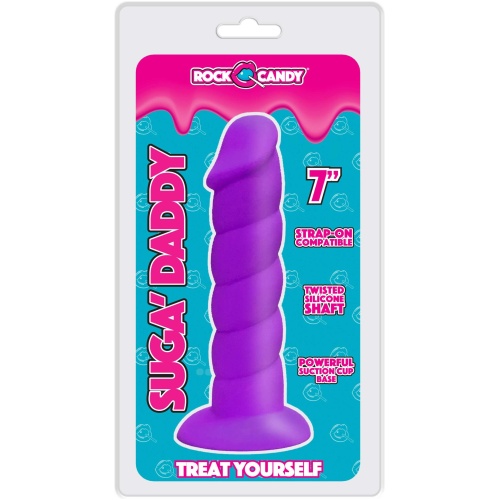 How many inches does it take to get to the center of your sweet spot? The Rock Candy Sugar Daddy is up for the challenge! Even better than the real thing, this chunky hunk is crafted to satisfy your deepest carnal cravings. The Sugar Daddy features an extra thick and twisted silicone shaft. The realistic head will tease and please the G-spot or P-spot as long as you can take it! With a flared suction cup base, the Sugar Daddy is harness-compatible for all types of play. Let the big Daddy show you that the candy man certainly can! (Who’s Your Daddy?)