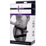 With this garter belt style strap on harness from Strap U, you get comfort and sex appeal, all in one system! The wide elastic straps will accommodate most sizes, and the attractive thong style back design offers snug maneuverability you can insert your favorite flared base dildo into one of the included metal O-rings, snap it into place, and you are ready to start penetrating your partner. The back supporting strap offers a more form fitting design that hugs the contours of your body, allowing you to move freely. With the interchangeable rings and snap-in system, you can sway out one of the included rings for your own, for more size options! This harness system is easy to maintain, making this a comfortable yet sexy choice for all your strap on adventures.