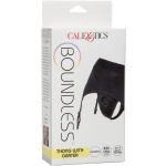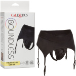The Boundless™ Thong with Garter is an ultra-comfortable harness fashioned like risqué backless brief with powerful performance and comfort in mind. This bold harness has an extra-wide waistband, unique garter belt design and reinforced O ring for the ultimate support. The durable, reinforced O-ring stretches to accommodate your favorite packer, vibrator or dildo. With a form-fitting design, this comfort harness can be worn discreetly under clothes. The sensual garter belt is complete with adjustable straps for a sexy, yet comfortable fit. Enjoy pleasure made for two with the double panel interior for easy access to your favorite probe.