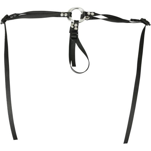 This thong-style strap-on is minimalist and sleek, perfect for pegging or packin g. This strap-on has 3 points of adjustment and accommodates hips up to 60 inch s. Use with flared-base dildos. Dildos sold separately.