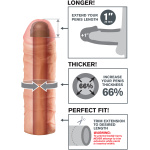 The Mega 1-inch Extension is a customizable extension that can be easily trimmed at the base for a perfect fit. It’s super-stretchy to accommodate most sizes and snug enough to help you last longer. Your partner will enjoy deeper penetration with the 1-inch extension at the tip while the ultra-lifelike shaft makes you 66 percent thicker to offer a fuller feeling and exceptional climax. The soft Fanta Flesh material feels like a second skin giving you the length girth and confidence you need to satisfy your lover.