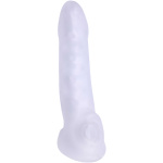 Make it big – slide into the Jacked Up Thick Extender for increased length and girth. Soft and stretchy to perfectly hug your shaft, Jacked Up Thick stretches eight inches from its ball-teasing base to a firm head in a sheer, frosted material that looks and feels incredible. The extender’s ribbed, studded interior stimulates the penis, while the attached ball strap holds it in place and tugs at the balls for added pleasure with every thrust.