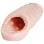 This easy to use jumbo penis enhancer will give you a massive and instant boost in girth and length. The studded interior grips your cock, and the large size shaft has ribbed vein details and a realistic cock head. The last 2 inches are solid rubber for serious gains, with a closed ended tip for easy clean up. Phthalate-free and slick, it is waterproof and versatile, with a secure strap so it is sure to stay in place no matter how hard you play.
