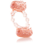 The Screaming O Two-O is a disposable vibrating cockring with two stimulating vibrating bullets, one on top and one on the bottom. The super stretchy ring slides over his shaft with the top vibrator positioned to touch her clitoris with every stroke and the bottom vibrator buzzes behind his testicles, giving c ouples something to scream about – together!