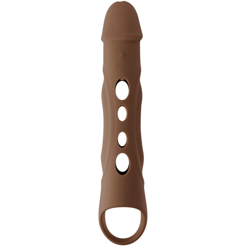 Increase your member with this remote-control penis extender that’s comfy and pliable – and vibrates in 10 speeds! Nestle your balls into the end loop and enjoy the peek-a-boo holes throughout the shaft as it buzzes all around you. Let the life-like head with its realistic crown ridge add to your natural length, even under water as it’s fully submersible. USB rechargeable, easy to clean, 25’ remote range.