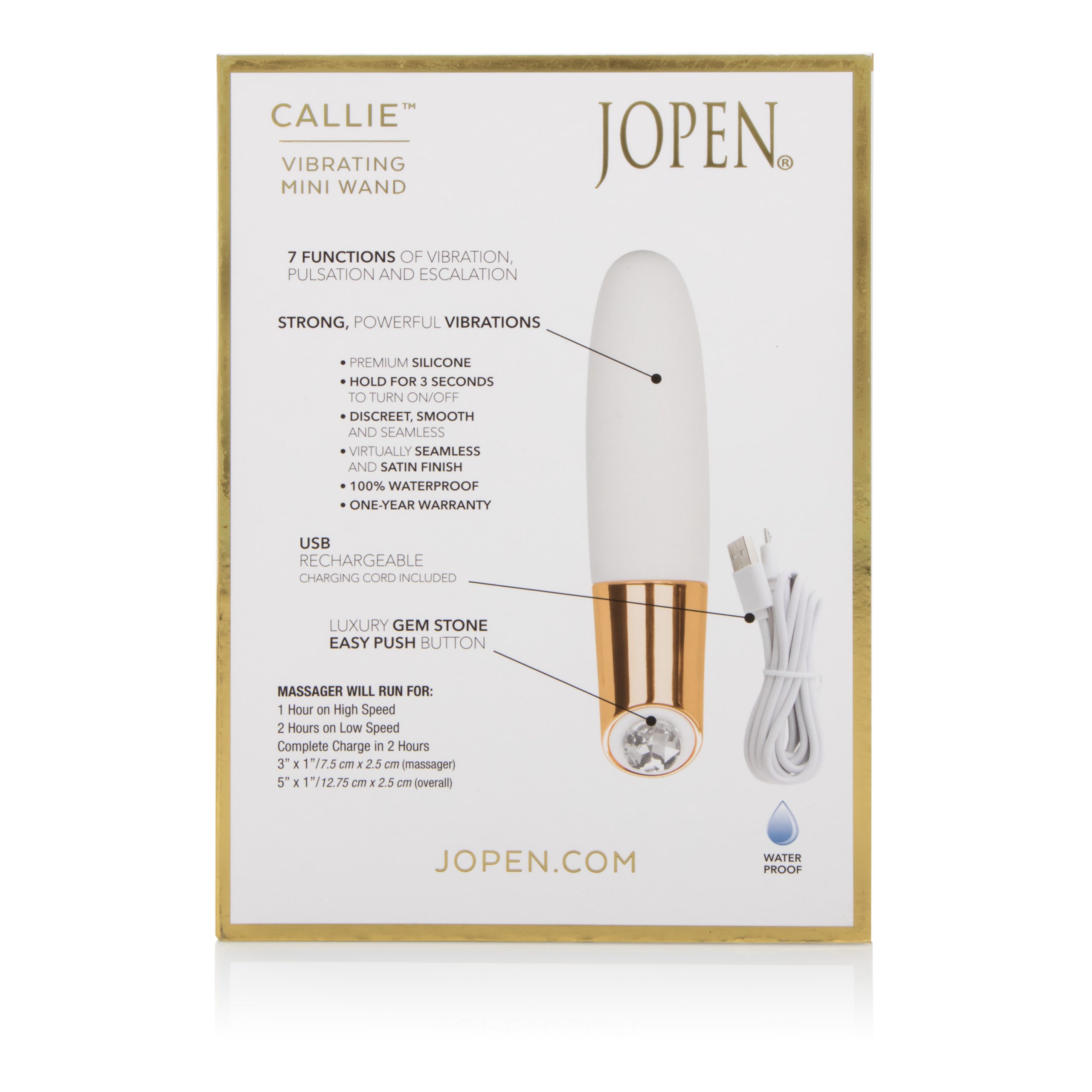The Callie™ by Jopen Vibrating Mini Wand provides intimate sized, perfect pleasure. Offering incredible heights of passion, this intensely stimulating massager will open the door to arousing adventure. Crafted from high-quality Satin Finish™ Silicone, the Callie Mini Wand offers you 7 fantastic functions of intense vibration, pulsation, and escalation for a brilliantly passionate experience like no other.