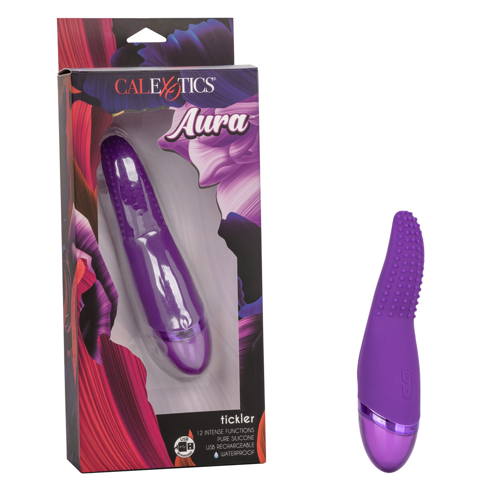 Awaken your inner desires with the teasing Aura Tickler, an ultra-flexible vibrator with a textured teaser. The nub textured body, flexible design and 12 vibration functions are sure to tease and please you just the way you like. The high-powered vibrator is crafted with powerful vibration motor and teasing nubbed texture to elevate arousal and increase stimulation.
