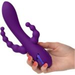 Give yourself over the your wildest fantasies with the fulfilling California Dreaming Long Beach Bootylicious. Experience pleasure like never before with the powerful triple action massager with vibrating shaft, tail, and stimulator. The powerful dual penetrating massager uses 3 speeds of vibration through the sensually curved shaft for g-spot teasing penetration. While a bedded tail thrills all those backdoor pleasure lovers, a bedded teaser flickers to the rhythm of 10 powerful functions of vibration. The rhythmic vibe teaser functions deliver show-stopping clitoral stimulation while the contoured shaft indulges with deep rumbling vibrators. Control and customize your pleasure play with the independently controlled vibration functions. Recharge the massager in 2.5 hours with the provided USB charging cable to enjoy 45 minutes of high- speed stimulation or 90 minutes of low speed vibrations. Enjoy frustration-free control with the easy-touch 3-button control pad and security lock feature for travel-ready teasing. The virtually seamless body and self-sealing charging port allow you to get this versatile waterproof vibe for a dip. The hypoallergenic premium silicone is body safe, unscented and phthalate free to keep your most sensitive spots, happy and healthy.