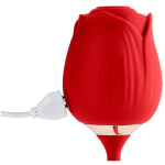 Both the Rose and the Stem end work independently of each other. The two buttons on the side of the Rose serve as both Power and function control for both stimulators. The top most button operates the Rose, while the bottom button operates the Stem. Press and hold the button of the chosen stimulator until the button lights – the device is now in standby mode. Press the same button again and that stimulator will begin to either pulse air or thrust. Cycle through each of the 10 settings in the same manner. Press and hold the same button to turn off the power. Both the Rose and the Stem ends can be operated independently or at the same time.