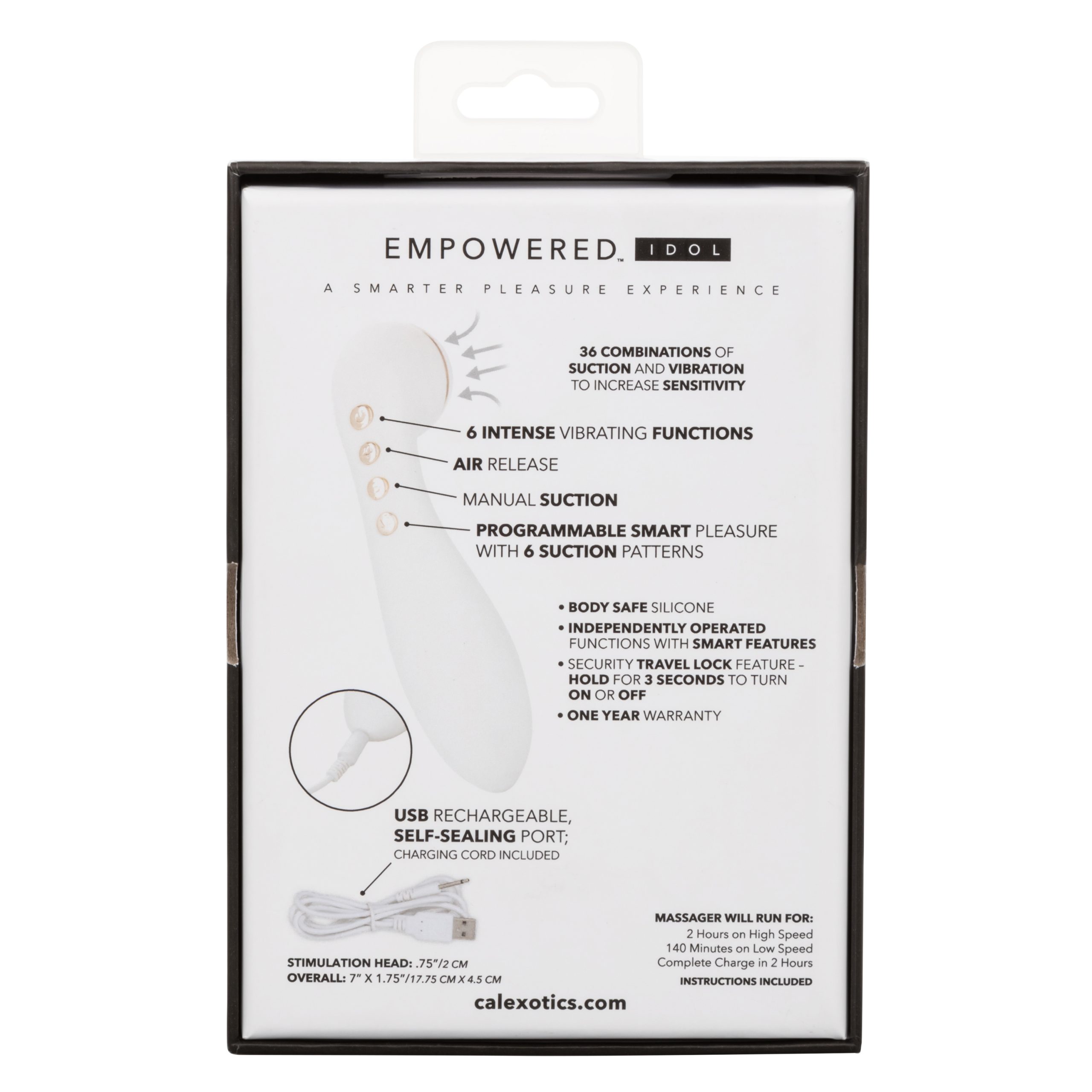 This Idol offers a truly smarter pleasure experience. With a constant suction feature, you can find the exact suction level your body craves. Then explore 6 unique functions using the suction power you set. Want more? Turn on the vibration and experience 6 ways to vibrate, pulsate and escalate your desire.