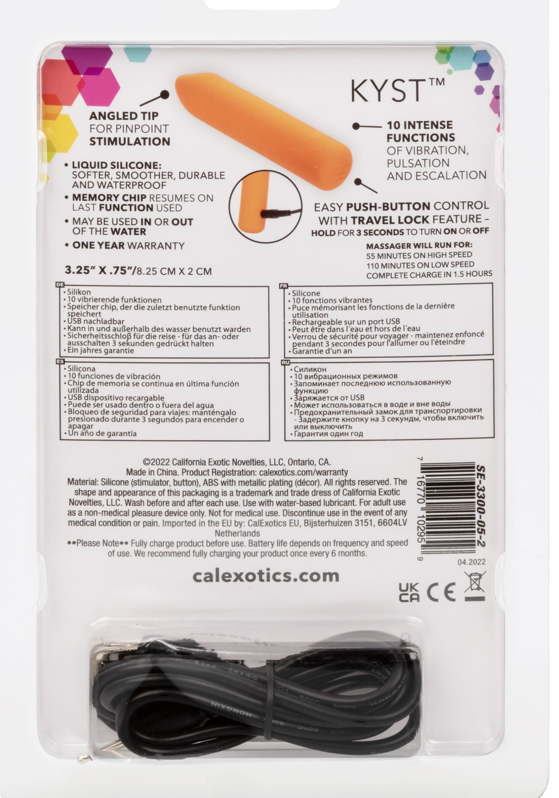 No matter where your travels take you, enjoy a little me time with the Kyst Fling mini massager. The powerful mini liquid silicone bullet is packed with 10 functions of vibration, memory chip, and a pliable body. The mini massager fits between your fingers to let you deliver pinpoint tantalization and thrill with rumbling vibrations. Get playful while you cycle through 10 indulgent vibration, pulsation and escalation functions with the easy-touch control button. The ultra-plush liquid silicone and uniquely flexible body are great for exploring sensual sweet spots and intimate pleasure points with ease. With a smooth shape and supple surface, you’ll be able to indulge in thrilling vibrations from any angle you desire. Charge up your passion in just 1.5 hours by plugging the provided USB cable into the self-sealing charging port on the base of the massager. Get playful with up to 110 minutes of vibrations with every charge. The slim massager’s discreet size makes it the perfect travel companion, letting you embrace radiating pleasure wherever your fantasies take you.