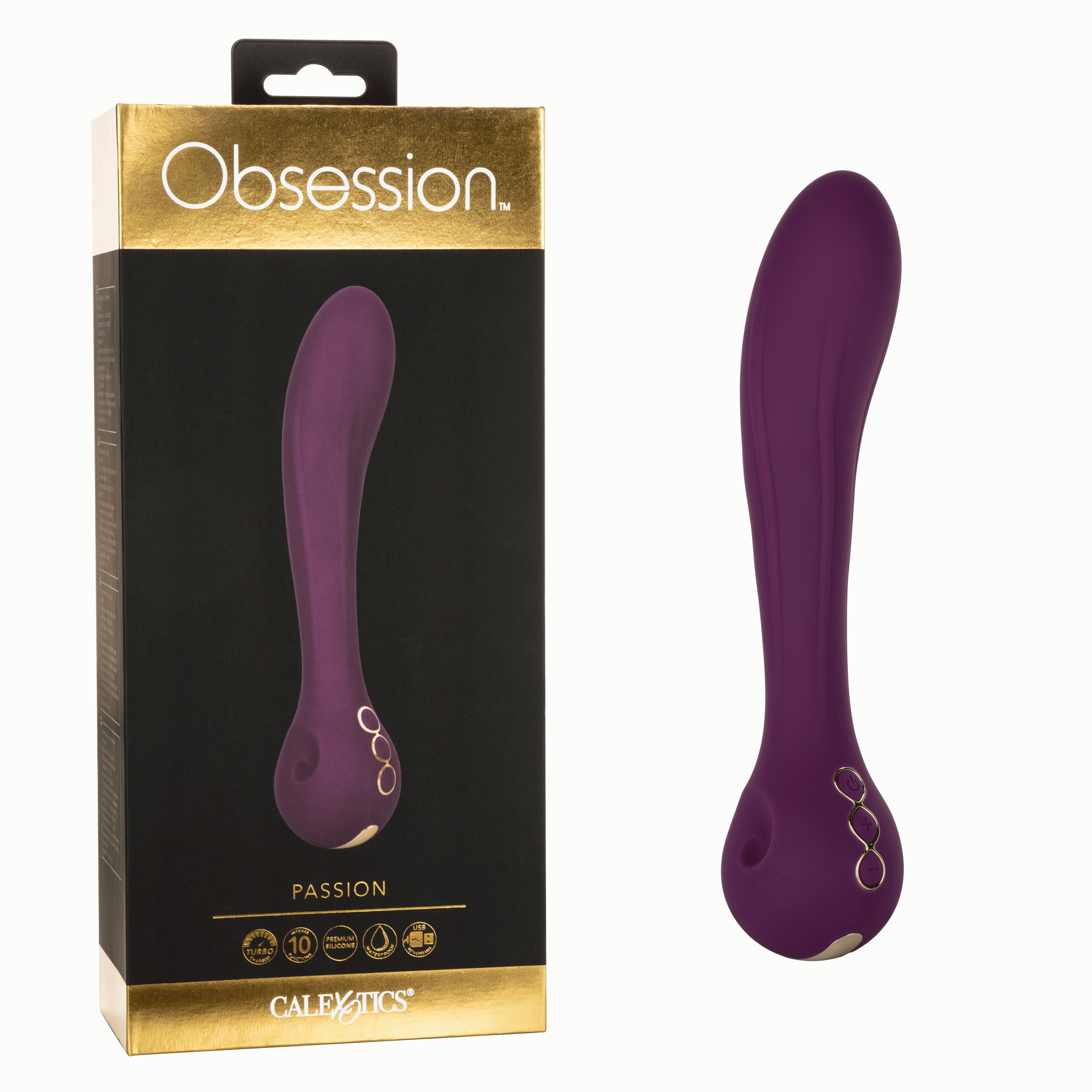 Decadent pleasure is at your fingertips with the indulgent Obsession Passion. The turbo-charged vibrator is sure to satisfy with the sensual texture, curved shaft, and 10 powerful functions of vibration.