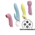 The Satisfyer Marvelous Four consists of 4 interchangeable attachment heads to deliver our four, best-selling sensations. Enjoy maximum variety and versatile stimulation with a dynamic experience of a rabbit, anal, air pressure wave and vibrating massager.