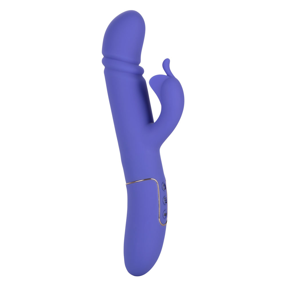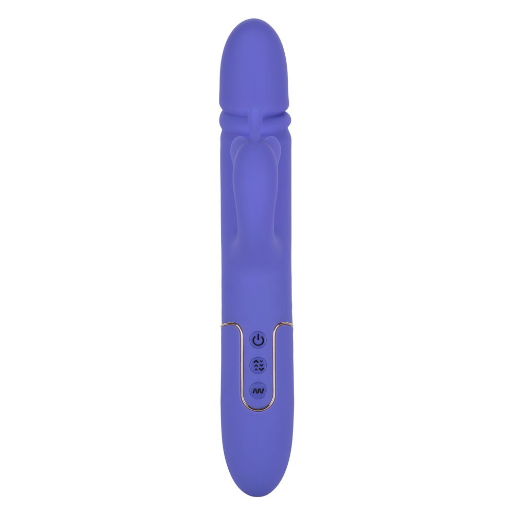 Dial in to exactly what you desire with the power 7 pulsation, vibration and escalation functions and 4 independently controlled thrusting functions. Flicker to your favorite setting with the easy touch control buttons for frustration free control. The silky smooth silicone and gold plated decor base make this vibrator a stylish addition to any pleasure toy box.