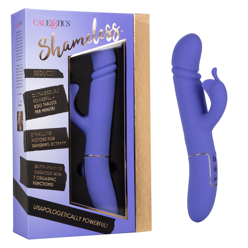 The power-packed Shameless Seducer delivers earth-shaking pleasure with 7 functions of vibration, 4 functions of thrusting and a flickering teaser. This insanely powerful massager will send you speeding towards ecstasy with up to 850 thrusts per minute.