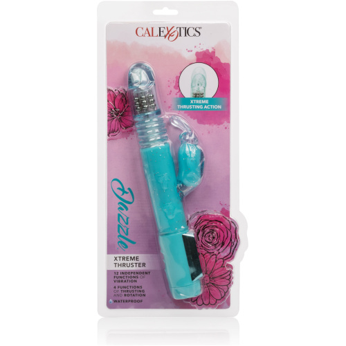 Bring thrilling fantasies to life this powerful vibrating masager, the sparkling Dazzle Xtreme Thruster has 12 playful vibration functions, 4 knee-shaking thrust functions and 4 function shaft rotation for a pleasure experience of a lifetime. With it’s thrusting tip, ribbed shaft and flickering bunny tickler deliver, the Dazzle Xtreme Thruster is an intense G-spot massager and clitoral massager. The easy-touch control pad allows for customizable stimulation with each independently controlled vibration, rotation and up-down thrusting function. While the 3 rows of non-jamming beads, slender shaft and multi-directional movement send rumbling stimulation to internal sweet spots, the flickering bunny teaser delivers powerful vibrations. As you indulge in intense pleasure, the LED control pad lets you enjoy frustration-free control on even the darkest nights. The premium TPR is body safe, unscented and phthalate free to keep you most sensitive spots, happy and healthy.