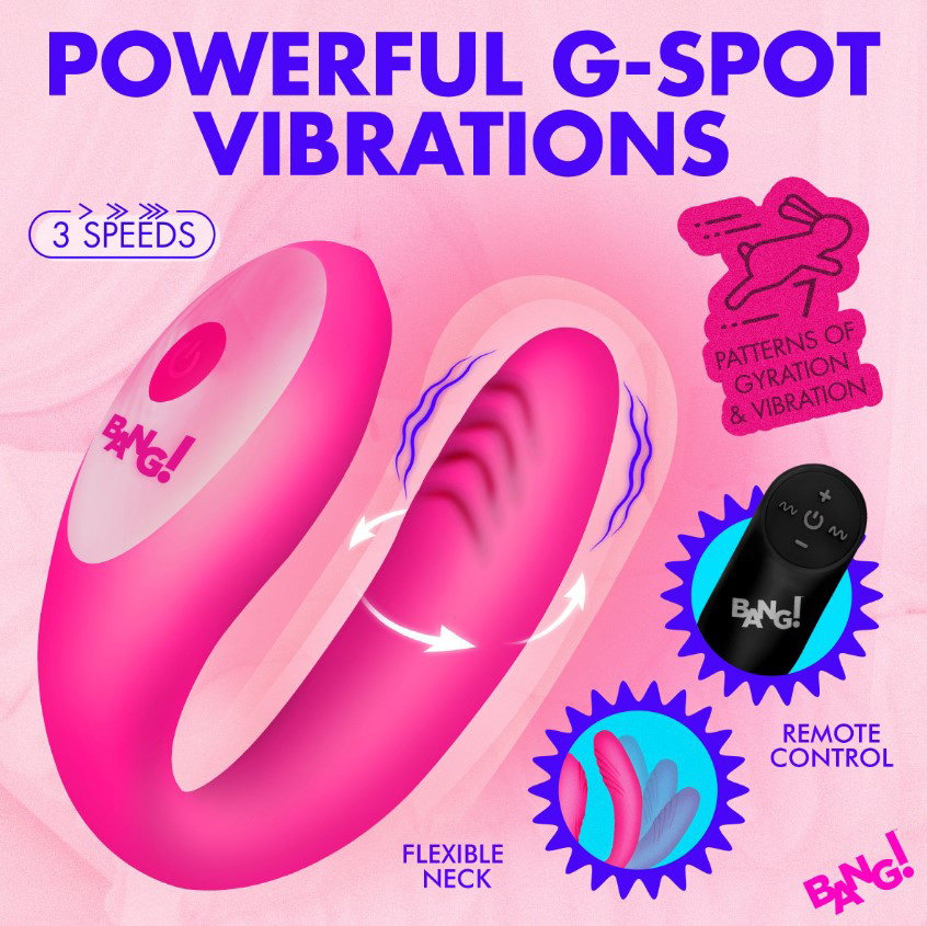 The BG Gyrating G-Spot Vibrator delivers modern stimulation by combining vibration with gyration. Its curved and flexible neck is engineered for precise internal targeting, while the textured silicone surface enhances sensation without being overwhelming. The included remote control allows easy switching between vibration and gyration modes for solo or partnered play.