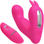Experience intuitive hands-free pleasure with the Pretty Love 12 function remote g-spot massager. Expertly sculpted to hug your g-spot and clitoris, this sleek silicone massager was made for your explosive enjoyment. Radiating deep, rumbling stimulation from the internal and external arms resting against your clitoris, this waterproof massager boasts dual motors for an effectively blended climax. Just add a splash of water-based lube, insert, and grind for hands-free hotness. Waterproof for wet and wild satisfaction, customize your pleasure as you cycle 12 speeds and 4 pulsing patterns via the remote control to find your vibe.