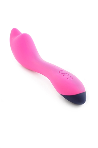 The Mademoiselle for vaginal clitoris nipple and g-spot play – can also be used as a full body massager. Middle button controls both motors as the On and Off control. F1 controls the G-spot with 12 intense functions. F2 controls lower area of massager also with 12 intense functions. 12 independent function for each motor. Rechargeable magnet charger.