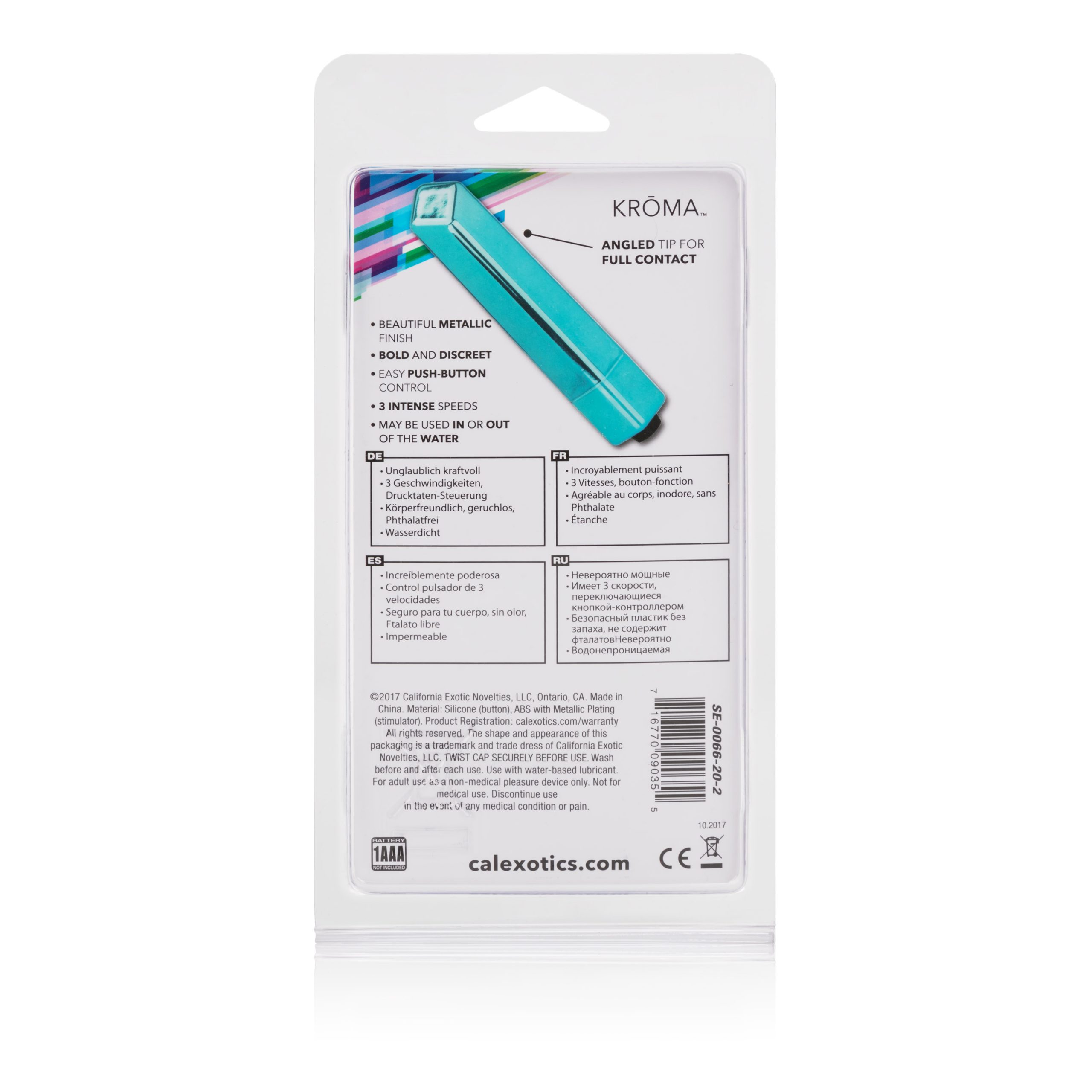 Stylish, compact and discreet. The Kroma is an easy to use bullet that features 3 powerful speeds and an angled tip for full contact stimulation. Finished with a bold and attractive metallic plating.