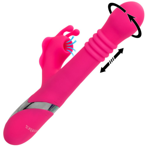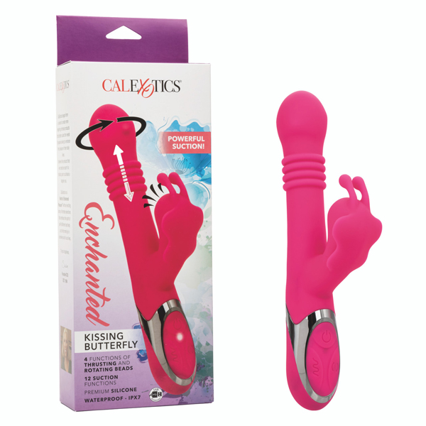 Surrender to the allure of the Enchanted Kissing Butterfly, a marvel of design ready to whisk you away on wings of pleasure. This luxurious vibe combines powerful thrusting and rotating beads within its shaft with a sucking stimulator that mimics the most intimate kisses. Each element works in harmony to deliver deep, pulsating rhythms that resonate through your entire body. Designed with precision, the Enchanted Kissing Butterfly features 4 functions of thrusting and rotating beads at the tip to enhance your internal sensations, while the 12 functions of intimate suction gently draw on your most sensitive areas, mimicking the tantalizing touch of a lover’s lips. Crafted from body-safe silicone, this dual stimulator is not only smooth and comfortable but also 100% waterproof with an IPX7 rating, making it the perfect companion for adventurous play in or out of the water. This enchanting butterfly is as convenient as it is pleasurable. With easy push-button controls, an instant on/off button, and an LED light for clear operation, it offers effortless enjoyment. USB rechargeable and efficient, a complete charge takes only 1.5 hours, providing 40 minutes of low-speed delight or 30 minutes on a high-intensity setting. Let the Enchanted Kissing Butterfly lead you into a world of indulgent stimulation and breathtaking satisfaction.