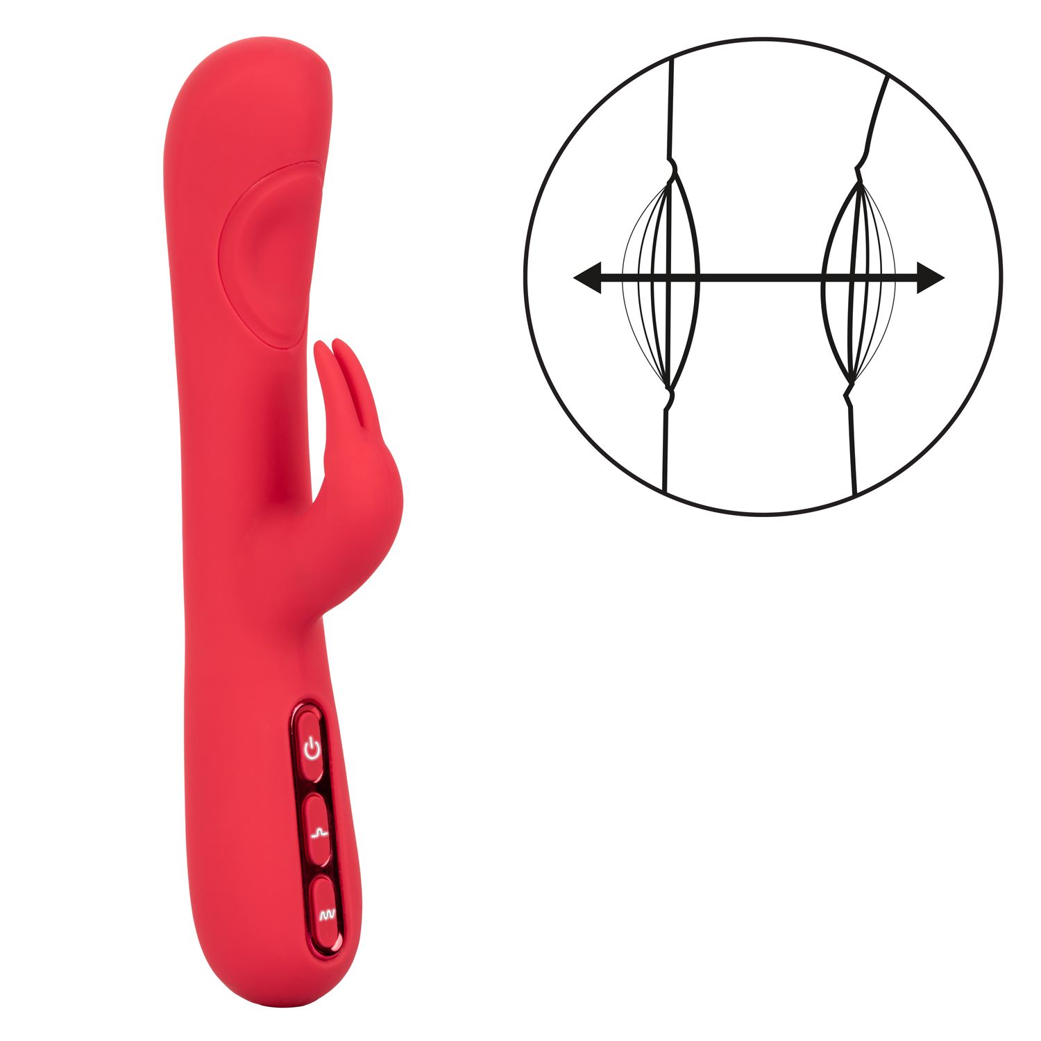 With 2 times the powerful thumping action, the thrilling Throb Pulse is made to get your pulse racing. This powerful rabbit vibrator has 2 uniquely placed thumping pads on both sides of the shaft to deliver 3 speeds of deep, rumbling thumping. A flickering rabbit teaser is made for knee-shaking stimulation as it shimmies to the rhythm of 7 intense functions of vibration. Embrace fully personalized pleasure with the independently controlled 3 speeds of thrilling thumping action and 7 functions of vibration.