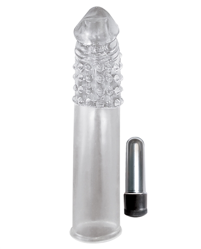 Fulfill your fantasies with this Vibrating Penis Extender. When your partner asks for more… you have got it. Gives you the extra length to go deeper. Ribbed bumps for added stimulation. Internal pocket to comfortably catch orgasm. Super stretchy sleeve fits most men.