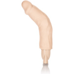 Life-like plushy soft unscented maintenance free dual density Pure Skin multi-function dong. Quiet flexing vertebrae allows bending in any direction. 10 sensational functions of vibration pulsation and escalation. Powerful motor positioned in the tip. EZ push button control with state-of-the-art memory chip that resumes last function used. Automatic on and off button.