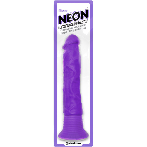 Indulge yourself with the simple pleasures of a classic! With ten vibrating functions, a powerful suction-cup base, and a sturdy realistic design, there’s a lot to love about this Neon Silicone Wall Banger! The lower button turns on the strong motor and the upper button cycles through ten ten intense pleasure functions, while the incredible grip of the suction-cup base holds the dildo securely in place, providing thrilling stimulation right where you want it. Stick the dildo to the floor, wall, bedpost, or almost any flat surface to enjoy wall-bangin’ satisfaction with each passionate thrust. And the Neon Silicone Wall Banger is conveniently waterproof – Try it in the spa or shower and turn bath time into pleasure time!!!!