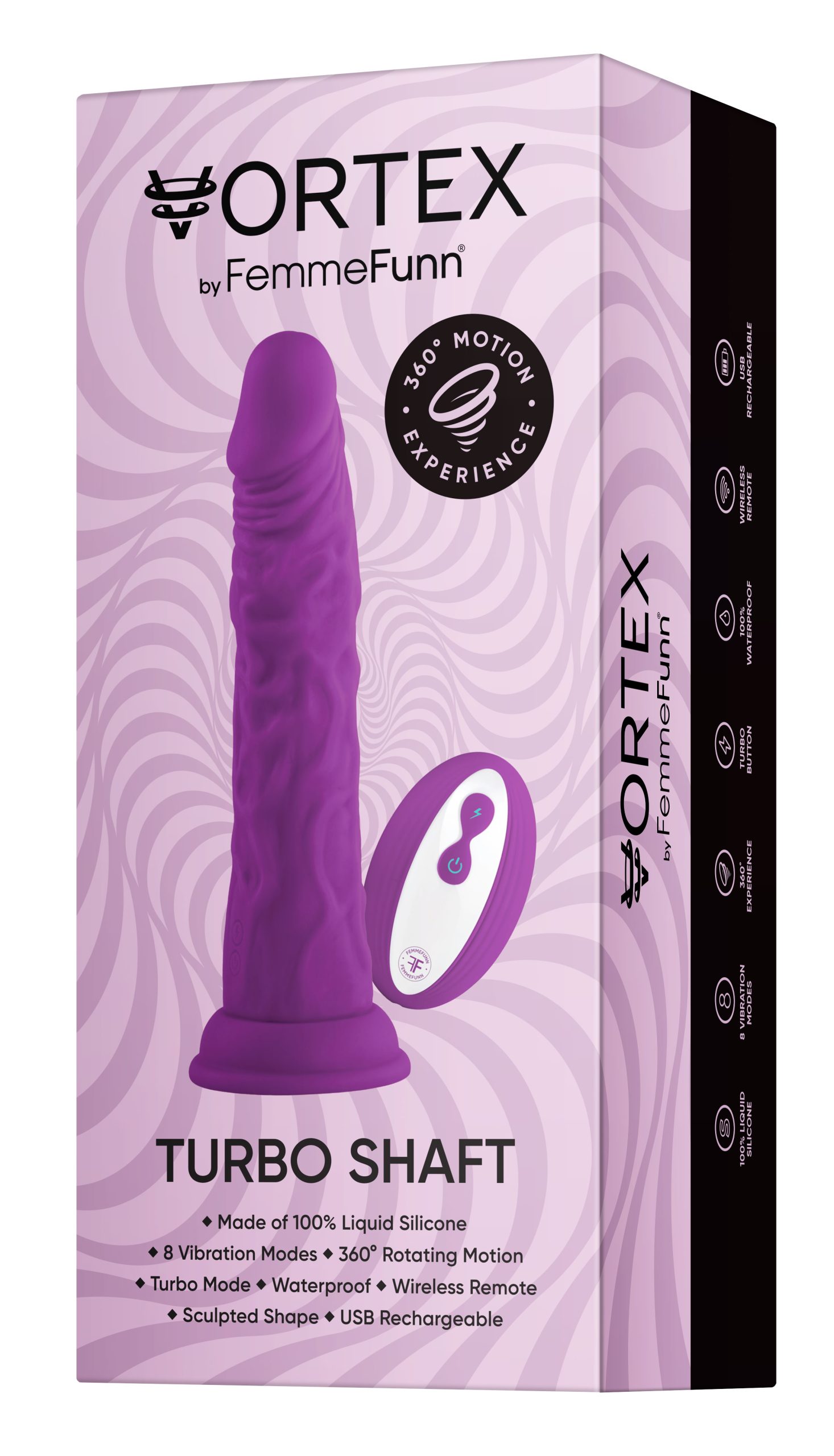 Have fun the way you like it! VORTEX Turbo Shaft is waterproof, wireless, and equipped with a suction cup compatible with most strap-on harnesses.