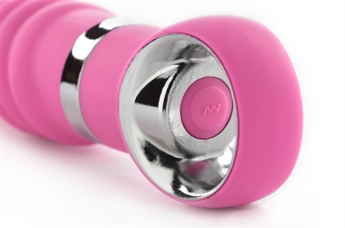 Artistry simplicity and functionality meet in this sleek design. Utilizing ergonomic contours and enticing ripples to create the maximum in enjoyment and possibilities. Gently probe those most delicate places with this 7-inch easy to hold handled massager. This imaginatively crafted 10-function vibrator comes with gently curving ribbed shaft. Made with a soft and silky smooth UV material that virtually seamless. As powerful as it is functional this exceptional massager will give you a vigorous workout and have you coming back for more.