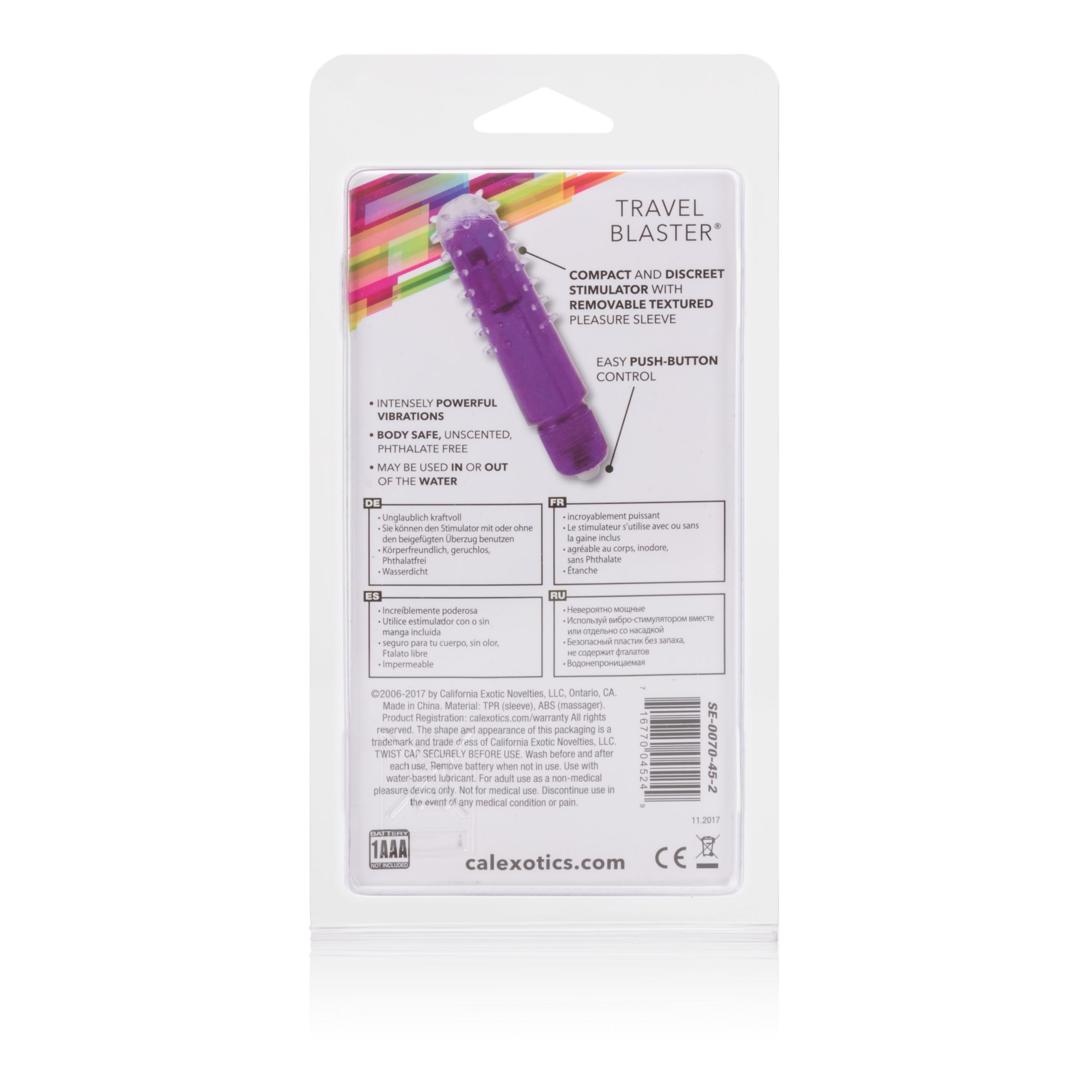 The Waterproof Travel Blaster massager comes complete with a removable nubby sleeve for independent use, plus 30% more power than before! Feel the intense power of this small yet mighty toy and let the massager take you into life’s wet and wild moments with the most satisfying and tantalizing pleasure. Take into the tub for some alone tie, take it into the shower for some steaming hot intimacy, or take it with you anywhere you want to get wet- it’s 100% waterproof! Measuring a modest 3″ (8 cm) long by 0.75″ (3 cm) wide, this stylish and ergonomically designed massager makes the ideal travel product for those on the go. It’s totally discreet so you can put it in any handbag or luggage bag for those naughty nights away or romantic weekend getaways with a loved one. The compact makes it a great starter product for first-time users who want something that is both waterproof and packed with intense power, and the removable textured sleeve gives you so much versatility.