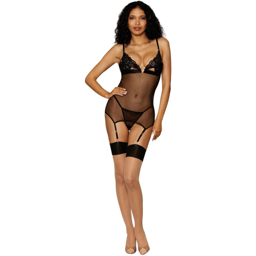 Fishnet and Faux Leather Garter Teddy With Leg Bands – One Size – Black