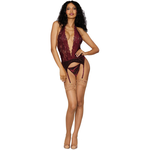 Garter Slip and G-String – One Size – Burgundy